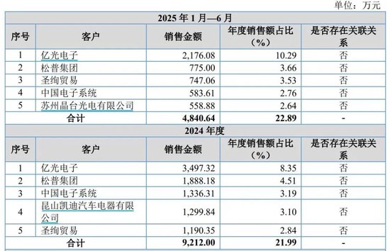 不过创达新材的客户集中度并不高。2022年—2024年及2025年上半年,公司前五大客户贡献的销售额合计分别占各期全年销售额的20.51%、22.64%、21.99%和22.89%。