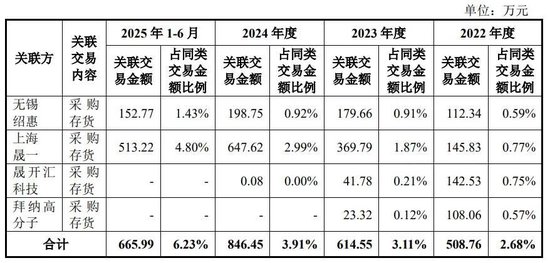 尽管转让了股权,但创达新材对无锡绍惠及其关联方的采购金额却逐年增长,2022年—2024年及2025年上半年分别为508.76万元、614.55万元、846.45万元和665.99万元,分别占公司各期采购总额的2.68%、3.11%、3.91%和6.23%,采购额和采购占比均逐年增加。2024年,无锡绍惠已成为创达新材的第五大供应商,并在2025年上半年成为第四大供应商。